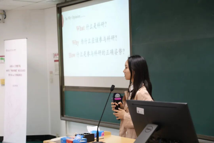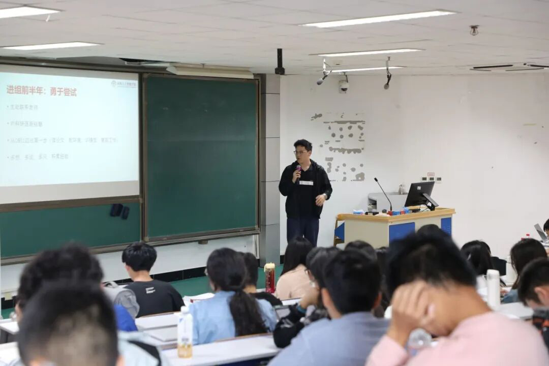 安楠结合自身科研经历,围绕 “什么是科研”、“为什么要参与科研” 以及 “如何开展科研” 三个核心问题展开分享。她特别分享了 “点对点” 的科研模式:在确定项目方向后,她始终以 “解决问题” 为核心目标,聚焦具体问题本身开展研究,这种以目标为导向的实践方式,有助于在科研过程中更高效地积累经验、突破瓶颈。此外,她还对公司本科阶段的专业课程体系进行了清晰梳理,鼓励学弟学妹们积极参与科研工作,期待大家能在科研探索中收获成长与启发。